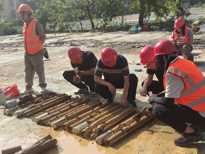 目试桩检测等项目组进行了检查,为工作人员送上了防暑降温慰问品并查看了工地现场资料、安全技术交底记录相关资料,对项目组如何更好地防范项目风险提出了宝贵意见和要求(见照片7~9)。